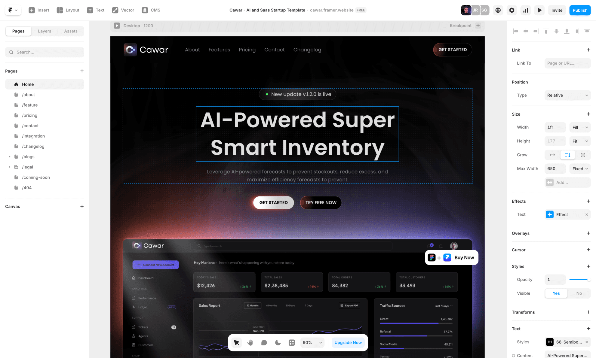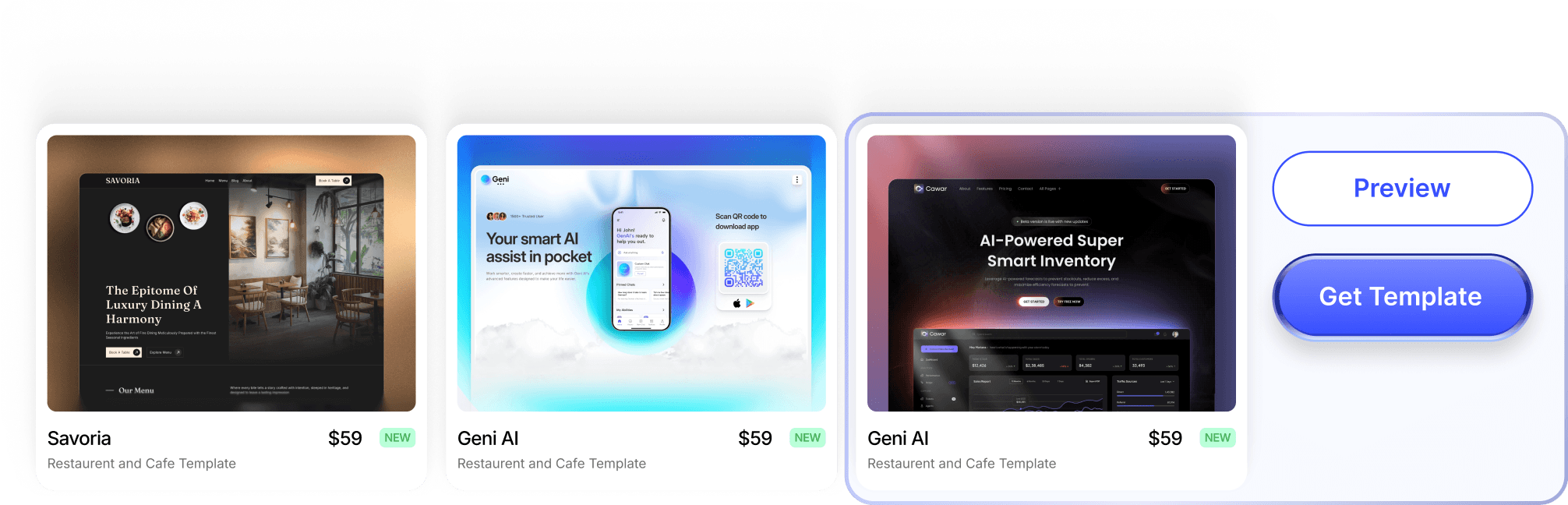 Choose from our library of premium, ready-to-use Framer templates that fit your style and project needs.